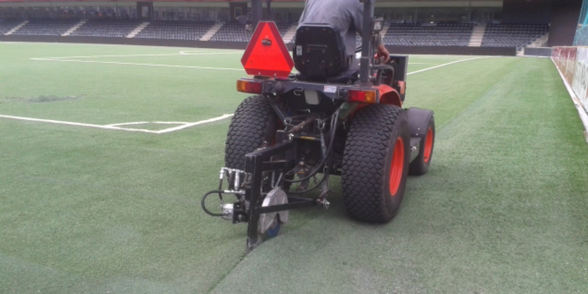 Deze kunstgras snijder is ideaal om kunstgras te snijden met of zonder infill. Het is een snelle en simpele manier van werken en zal de ondergrond niet beschadigen. De snijder is heavy duty en past achter alle tractors met 3-punts hefinrichting. Standaard is de machine uitgerust met een snijmes (eenvoudig te vervangen). Als optie is een roterend snijblad mogelijk (alleen ideaal voor snijden van kunstgras zonder infill).
